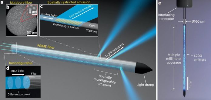 The new device, called PRIME (short for Panoramically Reconfigurable IlluMinativE fiber), is a next-generation tool that combines cutting-edge optical engineering with optogenetics—a powerful technique that uses light to control neurons that have been genetically modified to respond to it.
